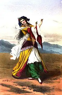 Au début du XIXe siècle, le courant orientaliste les fit connaître en Occident, sous le nom de danseuses du ventre. Cette dénomination est largement réductrice puisque, si les mouvements rapides des hanches sont effectivement caractéristiques, toutes les parties du corps sont sollicitées.
