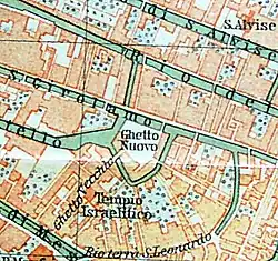 Cependant le ghetto, en tant qu'institution permanente, n'apparaît qu'en 1516, créé par la république de Venise, à Venise. Les Juifs qui viennent y chercher refuge, sont acceptés sous condition qu'ils vivent dans le geto nuovo, une île isolée de Venise[2]. C'est en 1541, que le vecchio geto est ajouté et que l'ensemble est appelé « ghetto »[2]. Le mot ne se généralise que tardivement dans les autres cités de la péninsule italienne, comme à Rome où les sources chrétiennes évoquent d’abord un "sérail" (serraglio), un enclos ou une enceinte (recinto, ridotto, claustro degli ebrei). Si du côté juif on parle plutôt de "hasser", le terme ghetto coïncide plutôt avec le mot hébreu "ghet" qui correspond au document par lequel un homme concède le divorce à son épouse. De fait si les juifs ne perçurent pas immédiatement le changement radical qui s’imposait à eux, ils assimilèrent progressivement le ghetto à une sorte de divorce avec la société environnante selon Kenneth Stow.