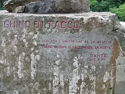Quant à Dante, il le cite dans Le Purgatoire, au chant VI, lignes 13–14, pour sa férocité lors de la mort de l'Arétin Benincasa da Laterina (juriste à Bologne, puis juge du Podestà siennois).
