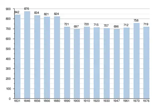 - Sources : INS, Rem. : 1831 jusqu'en 1970 = recensements, 1976 = nombre d'habitants au 31 décembre.