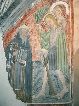 Annonciation et Les saints Christophe et Antoine abbé (1426), fresques, crypte du Dôme, Ivrée.