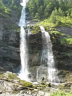 Les deux Giffres confluent sur la partie amont du bassin, sur la commune de Sixt-Fer-à-Cheval, en amont direct de l'entrée des gorges des Tines.