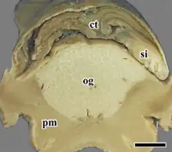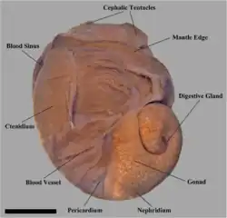 Cette glande œsophagienne (en) est fusionnée et agrandie pour remplir tout le côté ventral de la cavité du manteau[3]. Elle occupe 0,6% du volume de la masse viscérale chez les juvéniles, mais augmente allométriquement jusqu'à 9% du volume viscéral chez les adultes. Les sinus sanguins sont grands, mais peu nombreux et fixes.