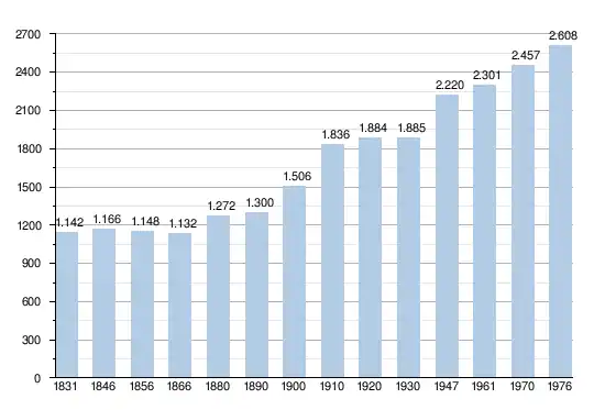 - Sources : INS, Rem. : 1831 jusqu'en 1970 = recensements, 1976 = nombre d'habitants au 31 décembre[2].