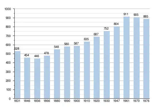 - Sources : INS, Rem. : 1831 jusqu'en 1970 = recensements, 1976 = nombre d'habitants au 31 décembre[2].