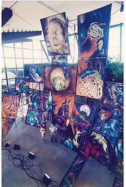 - 1988 : Illusions non- euclidiennes à l'aéroport de Gillot Saint Denis, avec plus de 50 000 visiteurs. Œuvre installation de grandes dimensions, 9 x 12 x 6 mètres sur une structure métallique parabolique de 3 tonnes. 21 tableaux en continuité visuelle traduisant l'Apocalypse de Saint-Jean[4],[5]
