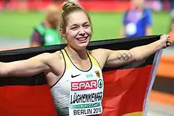Trois semaines plus tard, le , à l'occasion des championnats d'Europe à Munich, elle s'offre le titre européen sur le 100 m en devançant sur la ligne Mujinga Kambundji et Daryll Neita en 10 s 99[8]. Cinq jours plus tard, elle signe un doublé sur le relais 4 × 100 m avec ses compatriotes Alexandra Burghardt, Lisa Mayer et Rebekka Haase en 42 s 36[9].