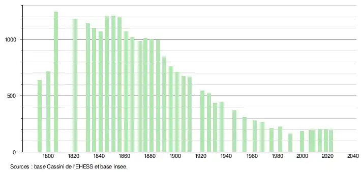 - ↑ Fiches Insee - Populations de référence de la commune pour les années 2006, 2007, 2008, 2009, 2010, 2011, 2012, 2013, 2014, 2015, 2016, 2017, 2018, 2019, 2020, 2021 et 2022.