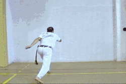 - L'autre base : le pied qui était devant dans la première phase vient maintenant derrière pour refaire la base de ginga de l'autre côté, donc on change également la position des bras.