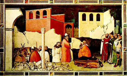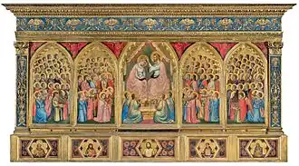 Elles y côtoient des œuvres de Simone Martini (vers 1280-1344), les Épisodes de la vie et de la passion du Christ, et d'Ambrogio Lorenzetti (v. 1290-1348), La Madone et les saints et les Stigmates.