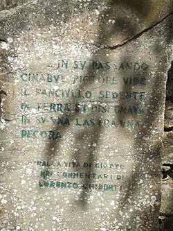 D'après la légende, recueillie par Lorenzo Ghiberti et Giorgio Vasari, « Giotto enfant aurait commencé par garder les chèvres de son père Bondone, et le peintre Cimabue, le surprenant à dessiner sur une pierre avec un charbon près d'un cours d'eau, émerveillé de son génie précoce, aurait emmené le jeune berger, âgé d'une douzaine d'années, dans son atelier ». Une plaque commémorative est visible près du pont où aurait eu lieu cette rencontre hypothétique.