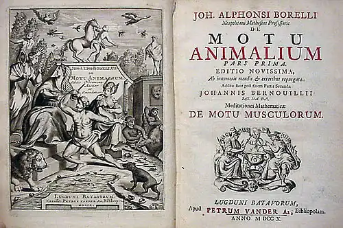 Dans De motu animalium (première partie), il compare les os et les muscles du corps humain à une machine constituée de leviers (les os) et de cordes (les muscles). Son livre s'ordonne comme des propositions géométriques, démontrant d'abord les forces impliquées dans différents types de leviers avec différents poids attachés. Il applique ensuite les conclusions au corps humain, calculant les forces musculaires du bras étendu avec des poids attachés à l'extrémité des doigts, ou celles du pied et de la cheville lors de la marche avec charge pesante sur le dos[6]. Dans ce domaine, ses résultats numériques sont d'une exactitude remarquable[7].