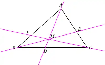 Théorème de Ceva, trisectrix of Ceva (d), cévienne |