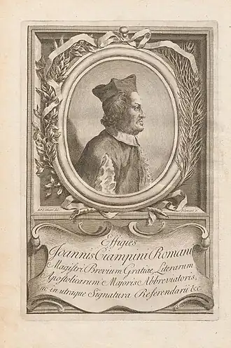 - ↑ (en) Thomas Joseph Shahan, « Giovanni Giustino Ciampini », dans Catholic Encyclopedia, vol. 3, (lire en ligne)