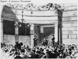 Passannante est soumis à des examens psychiatriques et il est déclaré sain d'esprit. Le , l'anarchiste est emmené à la prison de Castel Capuano, escorté par l'inspecteur, le commandant de la police, deux officiers et plusieurs policiers. Le procès se tient les 6 et . Passannante est défendu par l'avocat Leopoldo Tarantini.