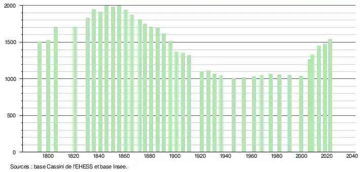 - ↑ Fiches Insee - Populations de référence de la commune pour les années 2006, 2007, 2008, 2009, 2010, 2011, 2012, 2013, 2014, 2015, 2016, 2017, 2018, 2019, 2020, 2021 et 2022.