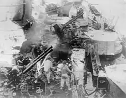 L'armement anti-aérien était complété par 16 Cannone-Mitragliera da 37/54 (Breda) (en)[22] en huit systèmes jumelés, particulièrement utiles contre les bombardiers-torpilleurs et les cibles à basse altitude en général[18], et douze mitrailleuses 20/65 mm Mod. 1935[23], en six systèmes jumelés.