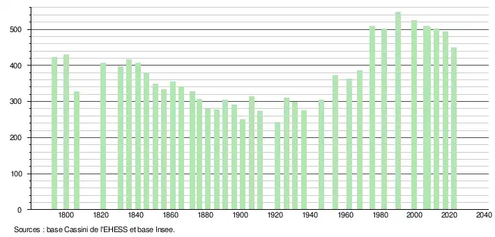 - ↑ Fiches Insee - Populations de référence de la commune pour les années 2006, 2007, 2008, 2009, 2010, 2011, 2012, 2013, 2014, 2015, 2016, 2017, 2018, 2019, 2020, 2021 et 2022.