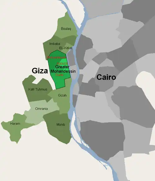 Aujourd'hui, Gizeh, chef-lieu du gouvernorat homonyme, totalise près de 8 900 000 habitants[note 1] et fait désormais partie de la métropole cairote.