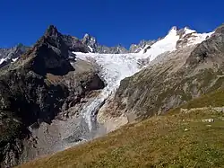 Vue en 2023 du glacier depuis le Grand col Ferret au sud-est. | |||