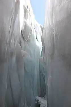 Le glacier du tour se termine sur une grande pente rocheuse, haute de près de 800 mètres et menacée par des chutes de séracs.