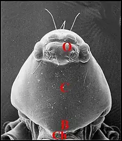 Elle est déjà perceptible par transparence dans des céphalothorax éclaircis artificiellement (Fig. 5 et Fig. 10 in Argyrodes). Sa connaissance est fondée sur les études histologiques et essentiellement sur les recherches au microscope électronique à transmission: Argyrodes argyrodes de type rostré[8],[9] et Argyrodes cognatus, de type acuminé[7].