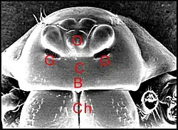 profonde avec un épiderme dont les cellules se sont différenciées en organes tégumentaires sécréteurs plus ou moins complexes, les glandes dites clypéales, sensu stricto chez les premiers, et au sens large, par abus de langage, dans les deux autres groupes.