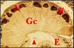 Celles-ci peuvent rappeler des cellules centroacinaires présentent dans les glandes salivaires ou pancréatiques des Mammifères. Leur protoplasme est dépourvu d’enclaves.