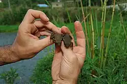 - ↑ Ogata, Hasegawa, Ohtani, Mineyama & Miura, 2008 : The ZZ/ZW sex-determining mechanism originated twice and independently during evolution of the frog, Rana rugosa. Heredity, vol. 100, p. 92-99.