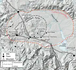 - ↑ (en) Northeast rim of Long Valley Caldera and Glass Mountain, California, observatoire de Long Valley