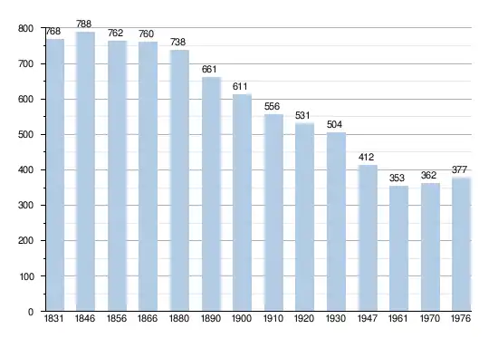 - Sources:INS, Rem:1831 jusqu'en 1970=recensements, 1976= nombre d'habitants au 31 décembre