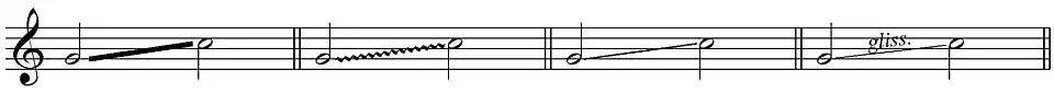 Il consiste dans l'élévation ou l'abaissement constant et progressif de la hauteur d'un son, obtenu de diverses manières, soit de façon linéaire soit par paliers successifs selon les instruments.