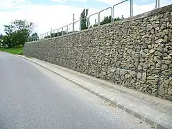 - Gabions : muraille de pierres entourée de grillage métallique pour stopper l’évolution du terrain vers la route.