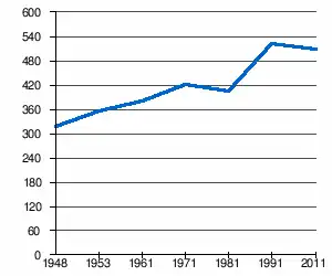 - 1 2 (sq) « Évolution de la population 1948-2011 », sur pop-stat.mashke.org (consulté le ).