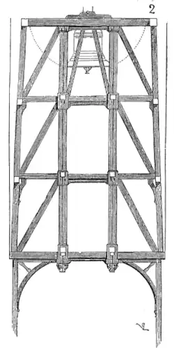 - Beffroi - Assemblage des pièces qui, dans une tour ou un clocher, portent les cloches[C 5].