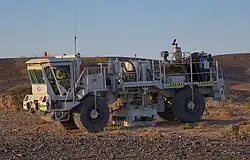 - vibrateur sismique, dispositif utilisé en prospection sismique, monté sur un camion ou sur une remorque, et capable d'injecter des vibrations à basse fréquence dans le sol