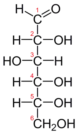 Les glucides sont définis par l'Union internationale de chimie pure et appliquée (UICPA) comme une classe de composés organiques contenant un groupe carbonyle (aldéhyde ou cétone) et au moins deux groupes hydroxyle (-OH). On inclut dans cette classe les substances issues des monosaccharides par réduction du groupe carbonyle, par oxydation d'au moins un groupe à l'extrémité de la chaîne en acide carboxylique ou par remplacement d'un ou plusieurs groupes hydroxyle par un atome d'hydrogène, un groupe amino, un groupe thiol ou par tout atome similaire.