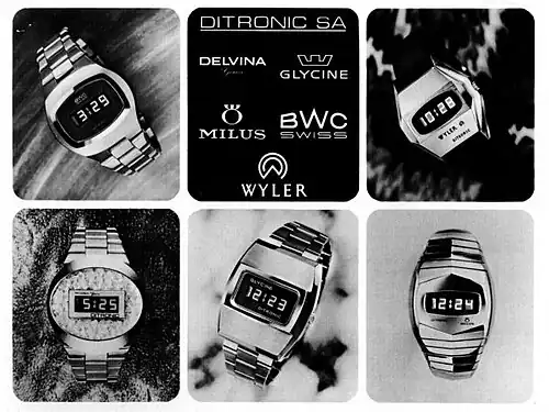 - ↑ « Cinq marques suisses présentent en commun la "Ditronic" », Journal Suisse d'Horlogerie, 1972, n°3, p. 308