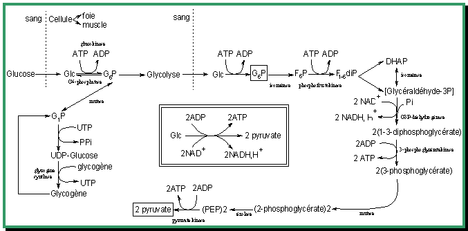 Conversion en pyruvate avec récupération d'ATP