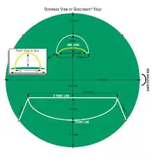 Un terrain ne dispose que d'une zone d'en-but et donc une arche. Les deux équipes doivent marquer dans la même zone.