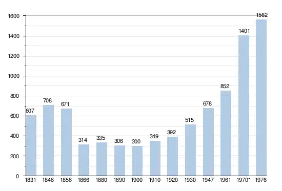 - Source: DGS, 1831 à 1970=recensements population, 1976= habitants au 31 décembre
