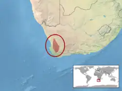 Cette espèce est endémique d'Afrique du Sud[1]. Elle se rencontre au Cap-Occidental et au Cap-du-Nord.