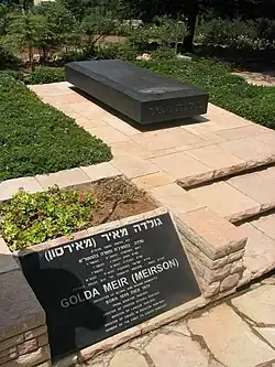 Le , Golda Meir est inhumée dans le carré des « Grands de la nation » du mont Herzl à Jérusalem[22].