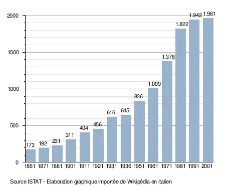 - ↑ (it) Popolazione residente e bilancio demografico sur le site de l'ISTAT.