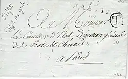 - ↑ Le Livre de poste ou Départ de Paris des courriers de la poste aux lettres sur Gallica, 1811, p. 90.