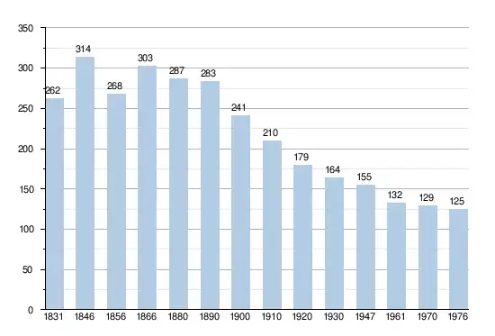 - Sources : INS, Rem. : 1831 jusqu'en 1970 = recensements, 1976 = nombre d'habitants au 31 décembre.