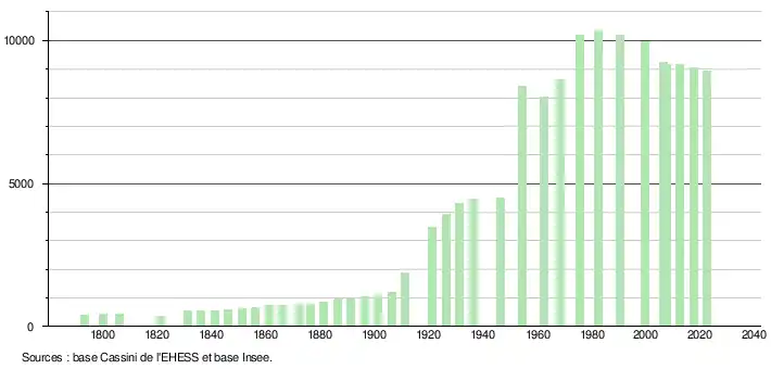 - ↑ Population municipale de référence en vigueur au 1er janvier 2025, millésimée 2022, définie dans les limites territoriales en vigueur au 1er janvier 2024, date de référence statistique : 1er janvier 2022.