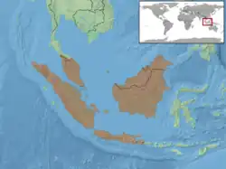 Cette espèce se rencontre en Malaisie, à Singapour, au Brunei et en Indonésie à Java, à Sumatra, à Nias, à Weh, au Kalimantan, dans les îles Natuna et l'archipel Riau[1].