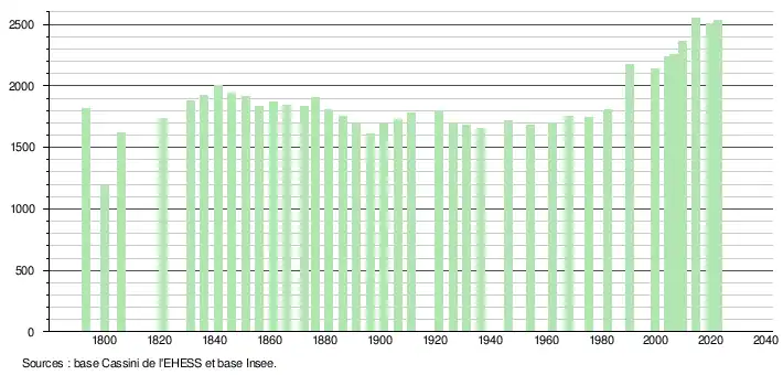- ↑ Fiches Insee - Populations de référence de la commune pour les années 2006, 2007, 2008, 2009, 2010, 2011, 2012, 2013, 2014, 2015, 2016, 2017, 2018, 2019, 2020, 2021 et 2022.