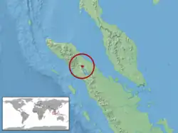Cette espèce est endémique de Sumatra en Indonésie[1]. Elle se rencontre dans les environs de Berastagi vers 1 200 m d'altitude.